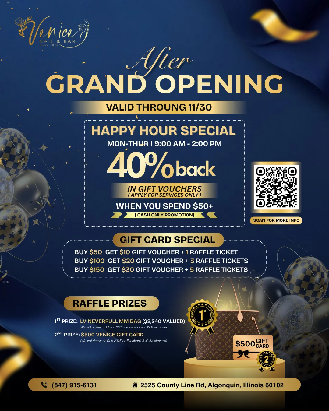 • Buy $100 → Get $20 voucher + 3 raffle tickets